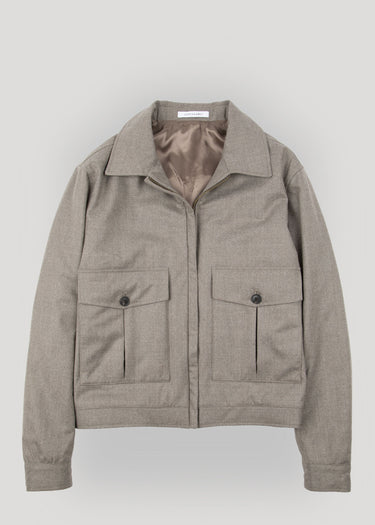 Our Flannel Blouson Jacket is fully lined and designed with an elegant collar, 2 pleated pockets on the front and 2 inside pockets.