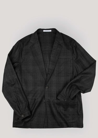 This Flannel Shirt Jacket is made with a blazer lapel and sewn with a silhouette that falls elegantly, from several pieces with beautiful detailing in the hem. The shirt jacket is made with 3 open patch pockets on the front, 1 inside pocket and horn buttons.