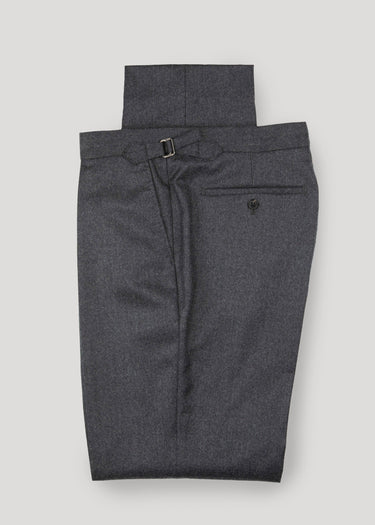 This exclusive flannel in a deep dark gray color with a beautiful melange play is woven in 100% extra fine Merino wool in a 270 gr fabric that provides a light and elegant trouser.